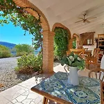 Deze 2-slaapkamer La Perla Andaluza Villa ligt op 10 minuten met de auto vanaf Embalse de la Viñuela en biedt een zonneterras met uitzicht op de berg.
